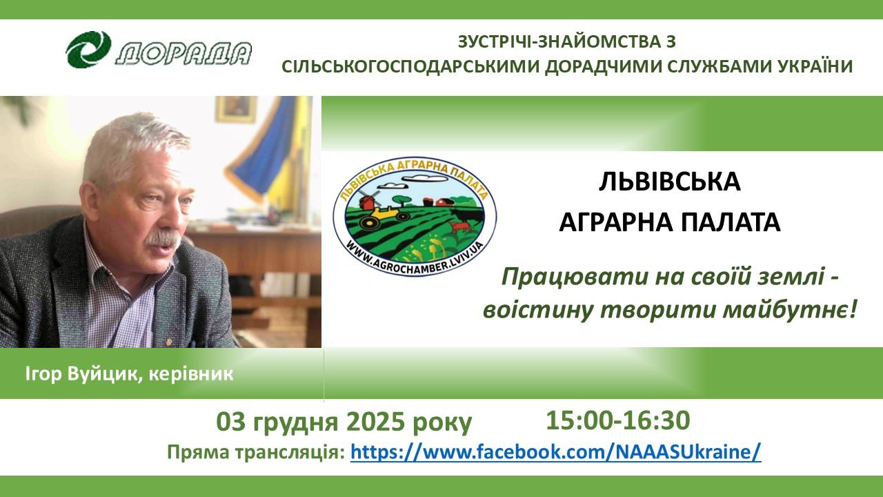 3 грудня 2025 року відбудеться знайомство-зустріч із Львівською Аграрною Палатою